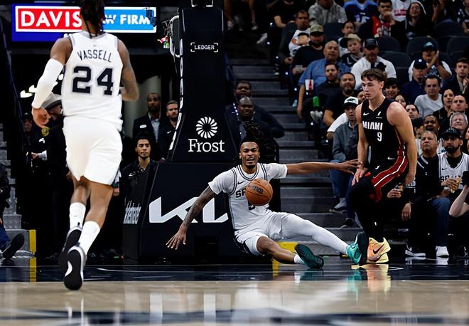 本场比赛中,马刺的先发控卫斯蒂芬-卡斯尔(Stephon Castle)的表现还是相当不错的。卡斯尔全场出场35分18秒,投篮12中7,三分线外4中2,罚球7中5,得到了21分6篮板8助攻4抢断1盖帽的数据,还有2次失误和4次犯规,正负值为+9。卡斯尔在进攻端也是保持了稳定的进攻效率,他不仅突破犀利,而且他在外线投篮方面的手感也还算不错 卡斯尔在传球和组织方面也是发挥出了自己的实力,而且他也是控制了自己的失误数并且打出了超高的助攻失误比。卡斯尔在防守端的表现同样是可圈可点的,他也是有着超强的个人防守能力,他的防守强度极高,防守侵略性极强,他在防守端的贡献度也是有目共睹的。卡斯尔在攻防两端都打出了极其出色的表现,这也是球队面对近来势头不错的热火依然能够取得一场胜利并且保持连胜势头的重要因素。